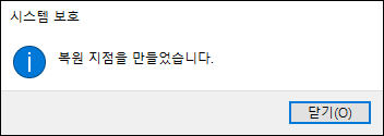 복원지점을 다 만들었으면 '복원 지점을 만들었습니다.'라는 메시지가 뜬다.