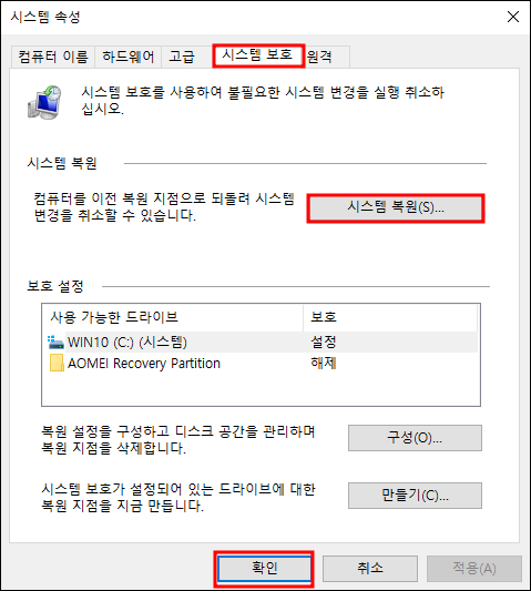 1. 윈도우10 시스템 복원 지점 만들기