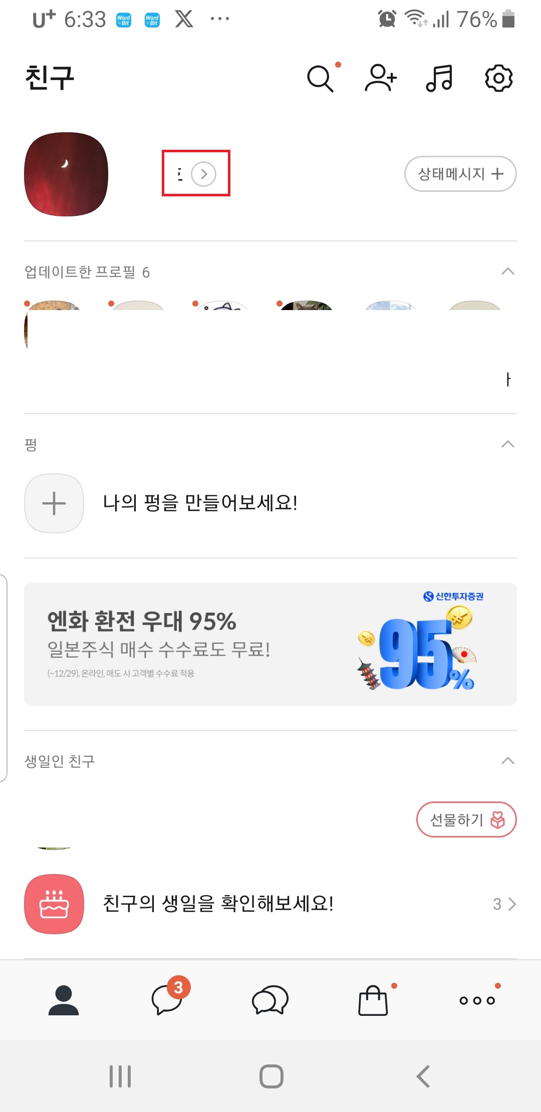 8. 이제 내 프로필 친구창에 들어가서 멀티프로필 아이콘을 클릭한다.